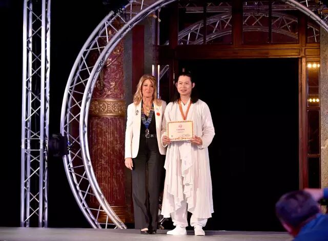法国狮子会总监Sylvie为罗子杰先生颁奖
