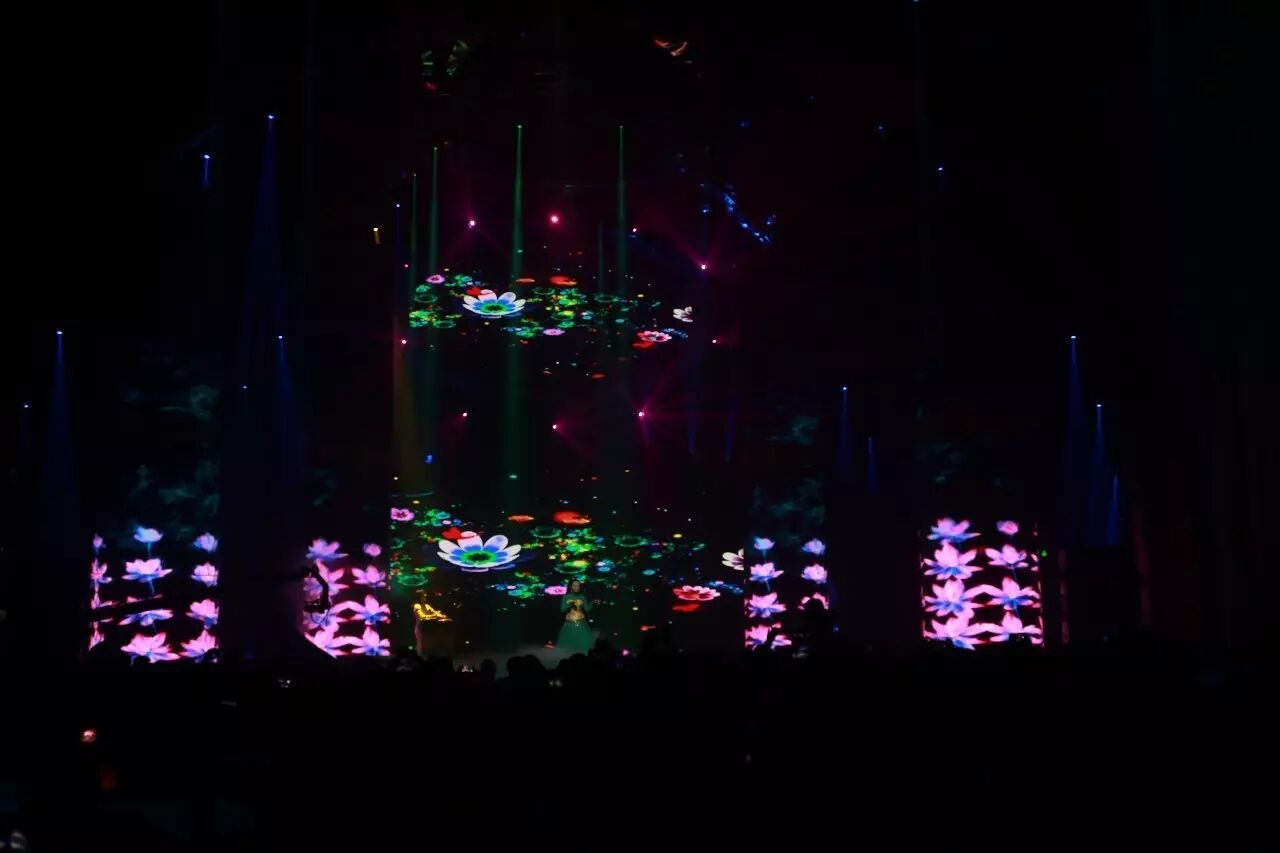 此次音乐会采用3D裸眼技术,主舞台位于观众视觉之下,与顶上屏幕相呼应,构成天地人合的立体图画。在音乐会中,莲花绽放、云雾缭绕、金鱼游走、梯田蔓绿,等等立体图景配合音乐与歌声,带给观众强烈的视觉震撼。