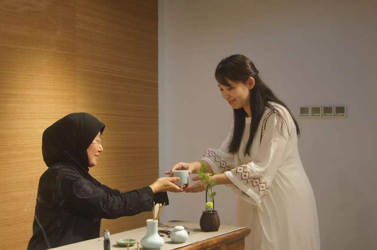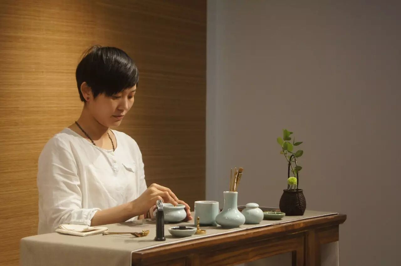 案上清供,放置岁时花果,邀请朋友喝上一杯清茶,静看花开花落,茶道老师传递的是一种优雅自在的生活态度。