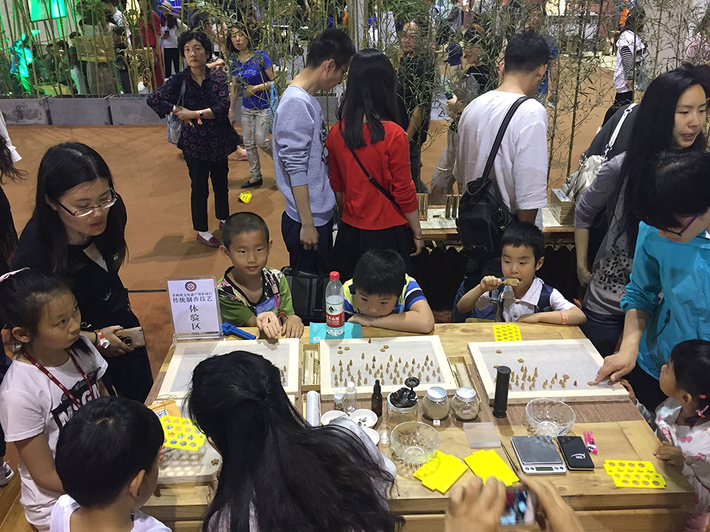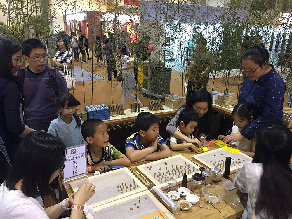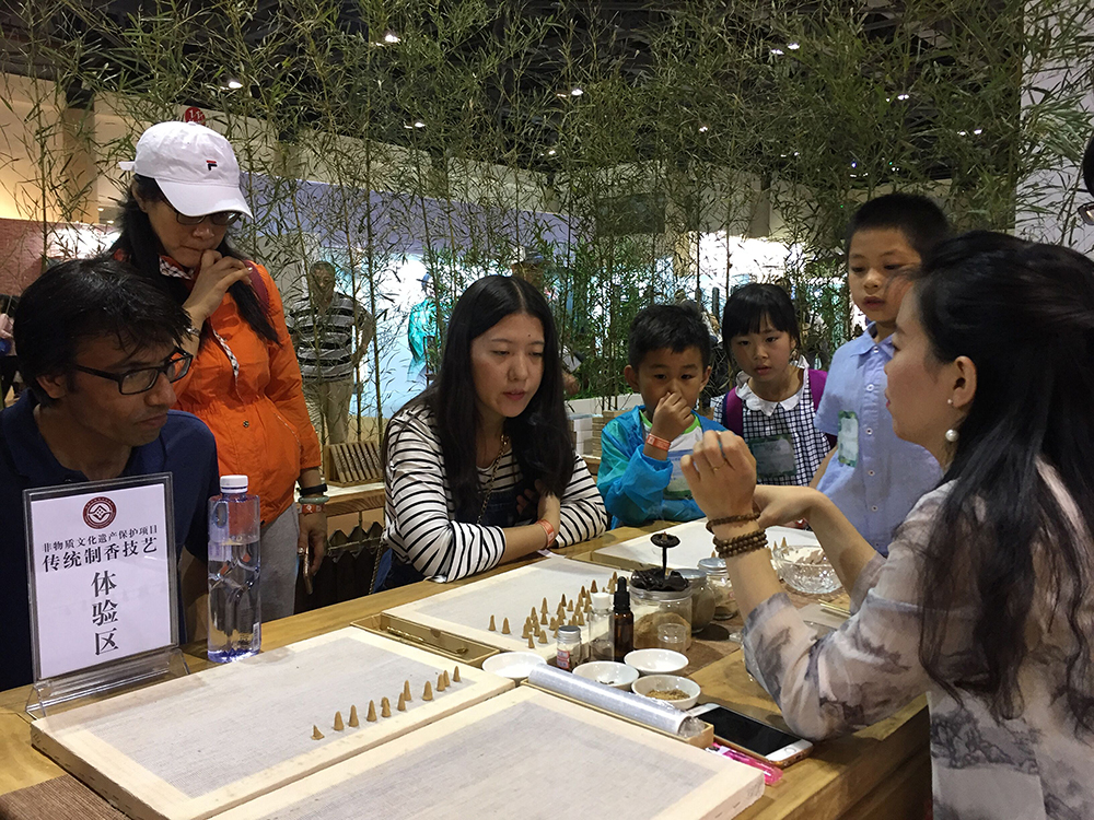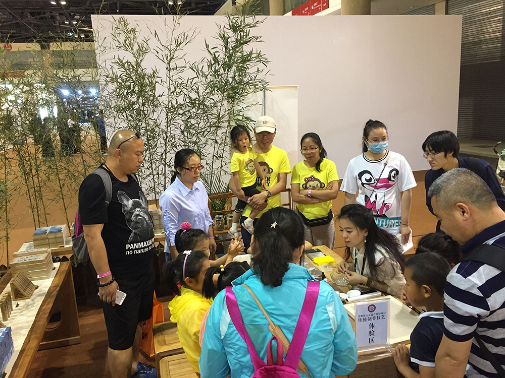 2017年5月日,上诗香道在北京展览馆2017北京音乐生活艺术展上设立了“非遗传统制香体验馆‘,来自全国的香文化爱好者参加了为期3天的体验活动,本次活动主要针对全国的青少年朋友举行,来自全国的小朋友们在家长的陪同下,参加了非物质文化遗产传统制香技艺的学习和体验。